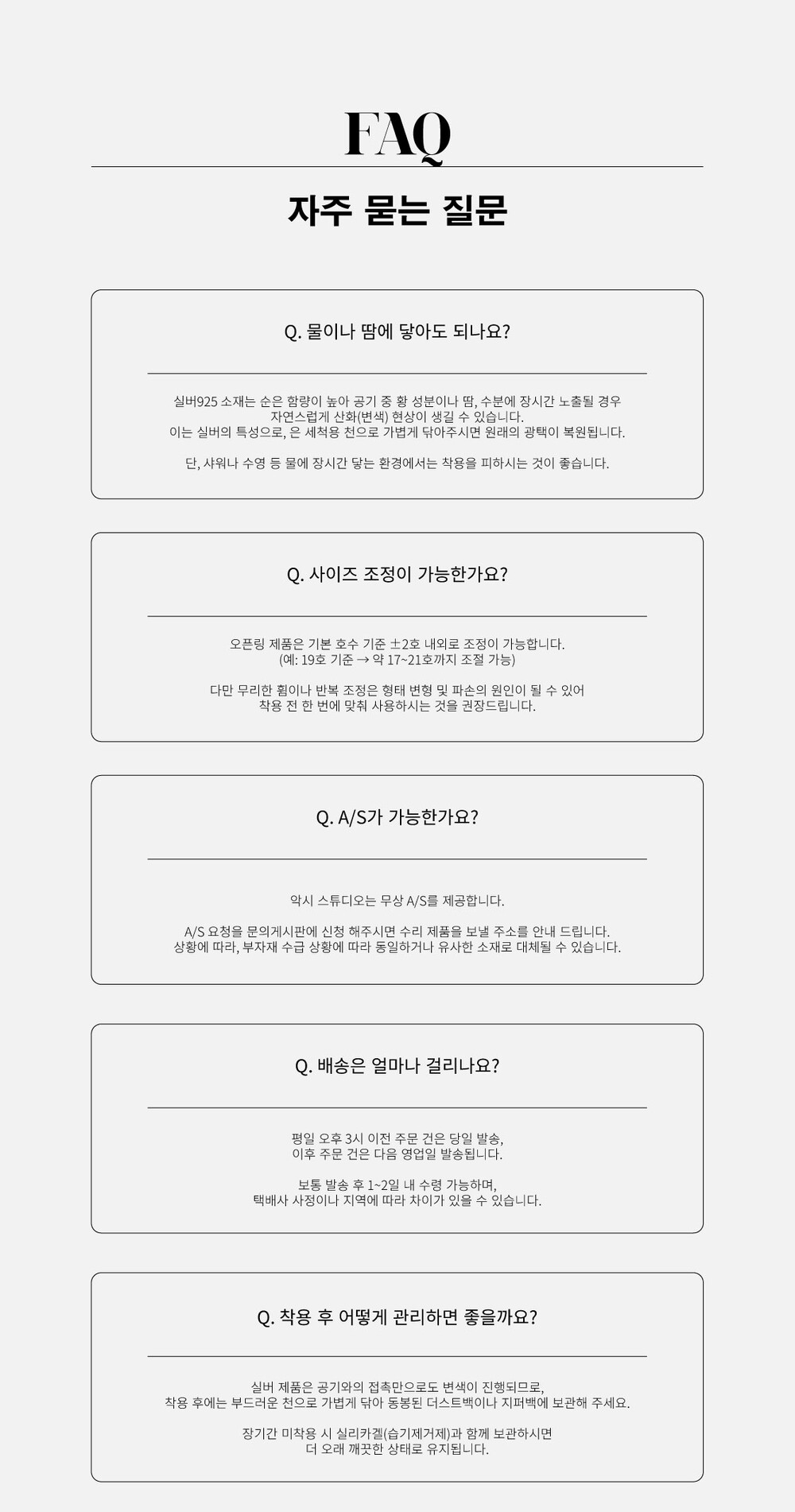 실버 제품은 착용 후 부드러운 천으로 닦아 밀폐 보관해 주세요.