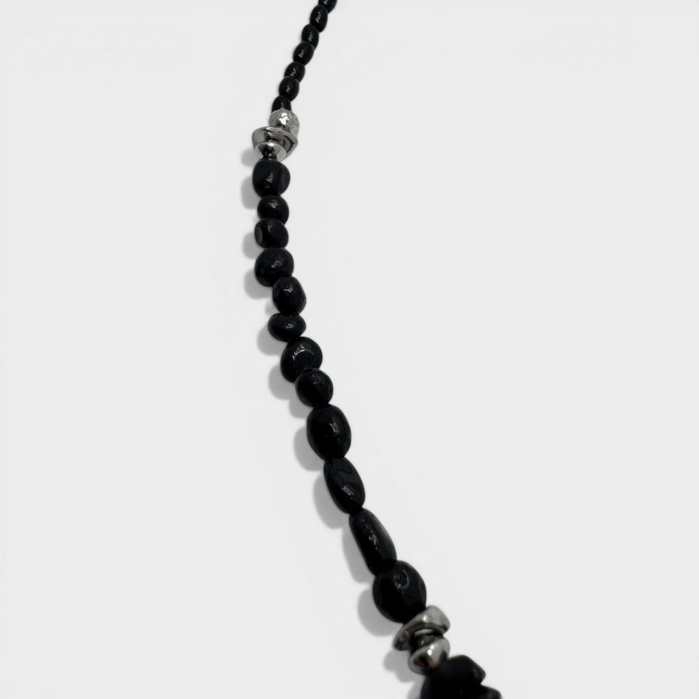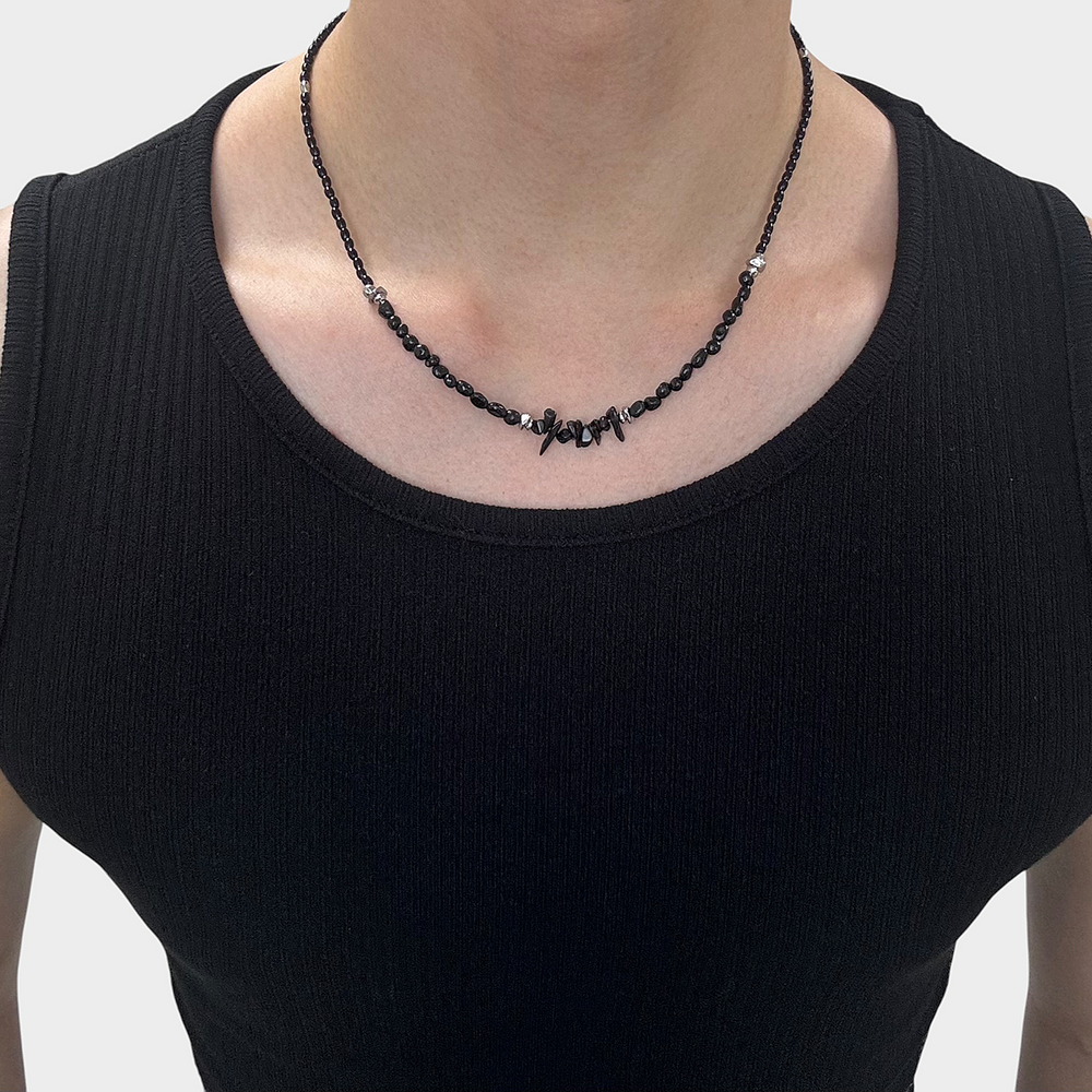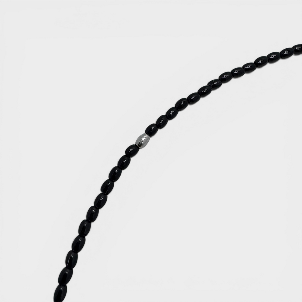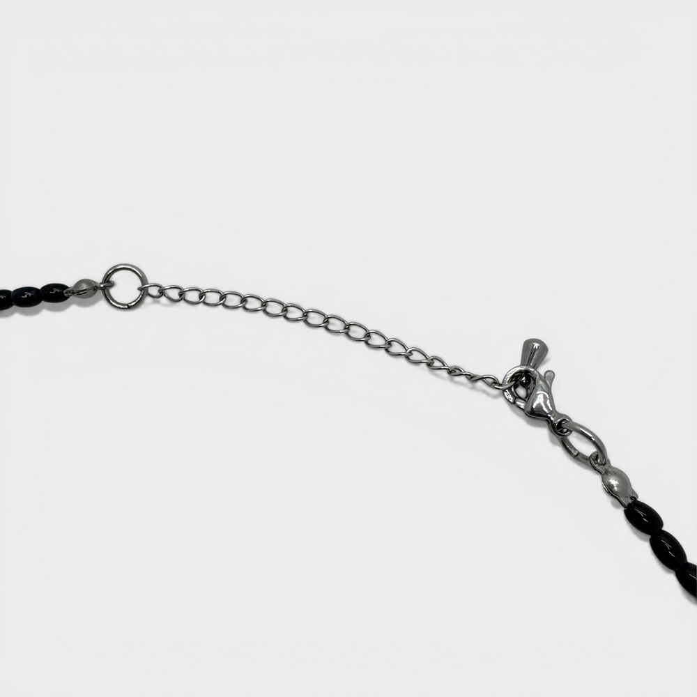 블랙 컬러의 글라스 비드와 써지컬 비드로 제작됩니다.