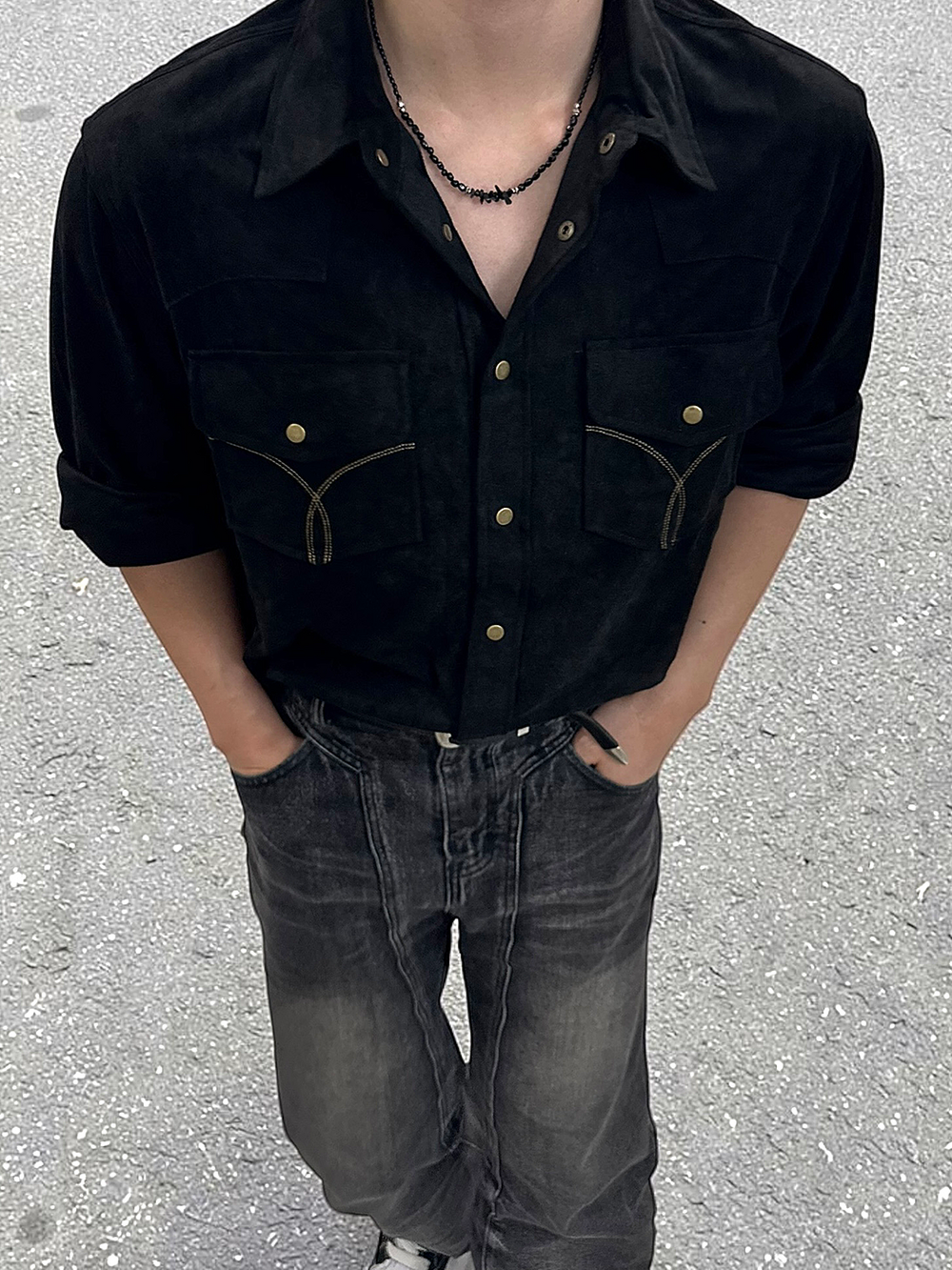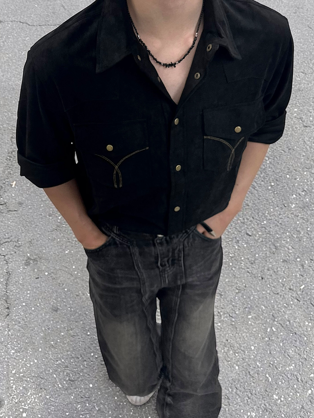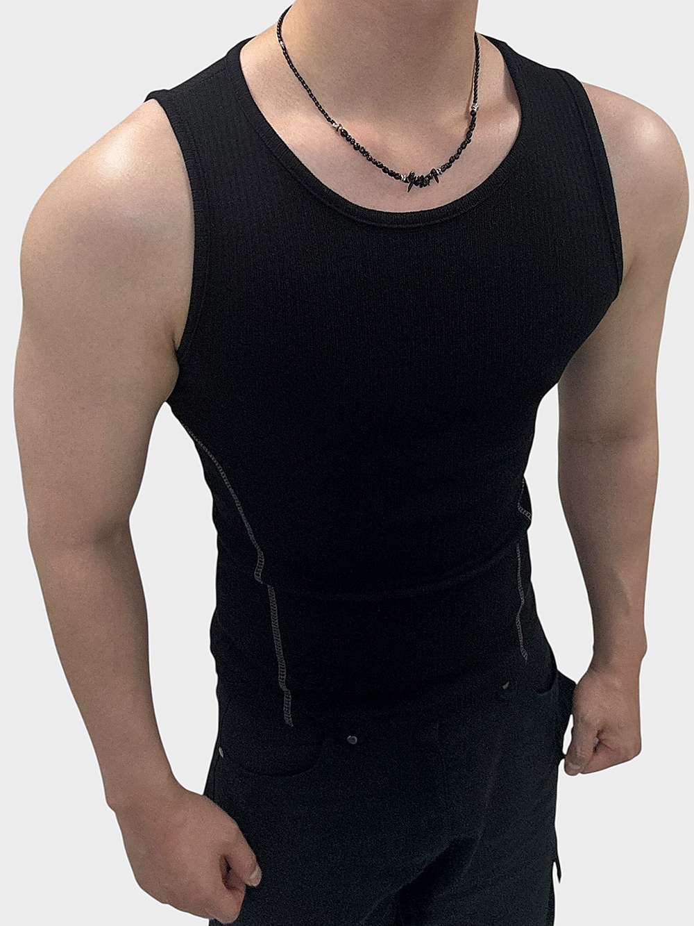 블랙 컬러의 글라스 비드와 써지컬 비드로 제작됩니다.