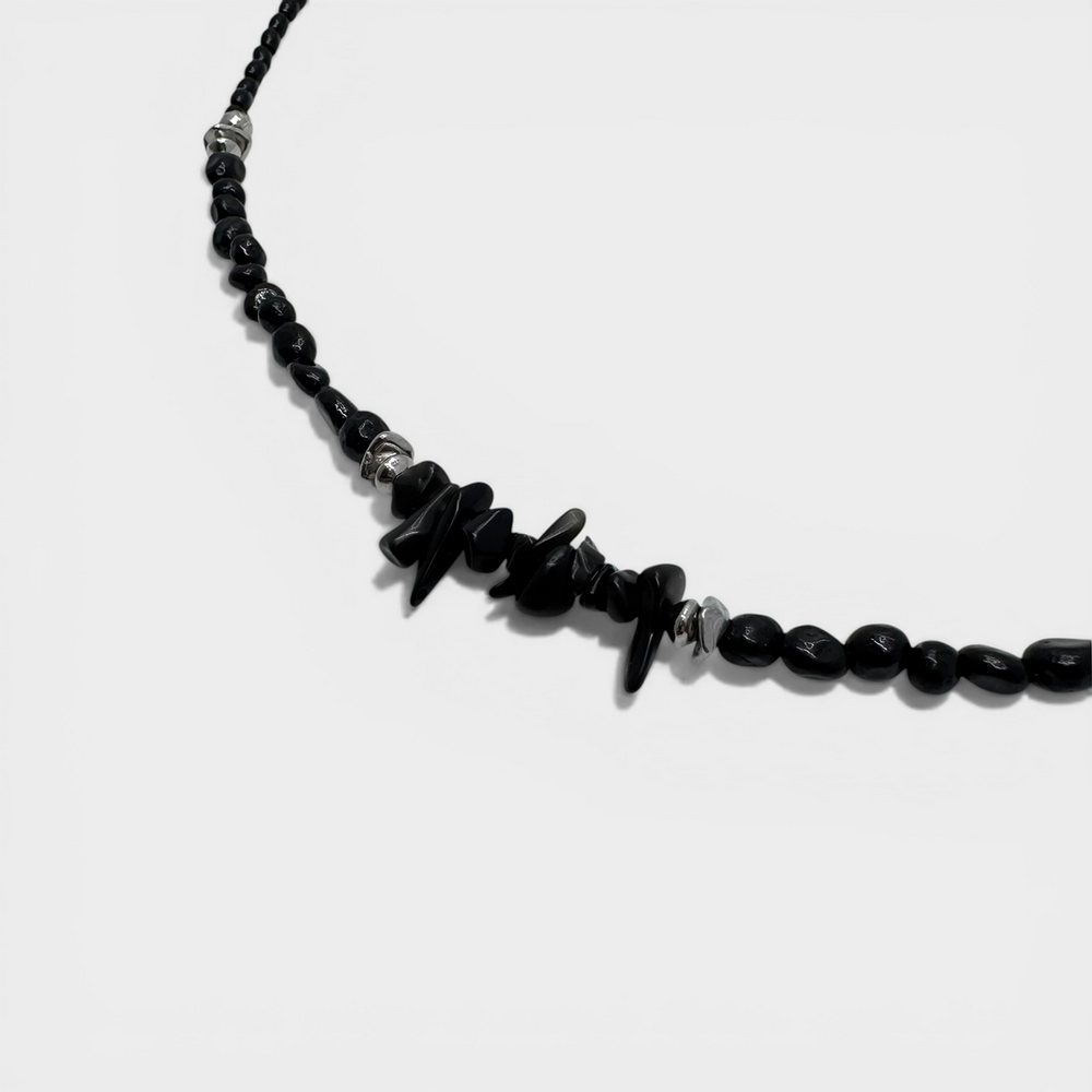 Black chips stone necklace