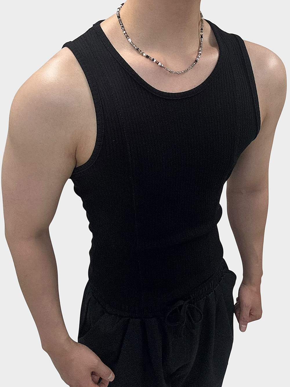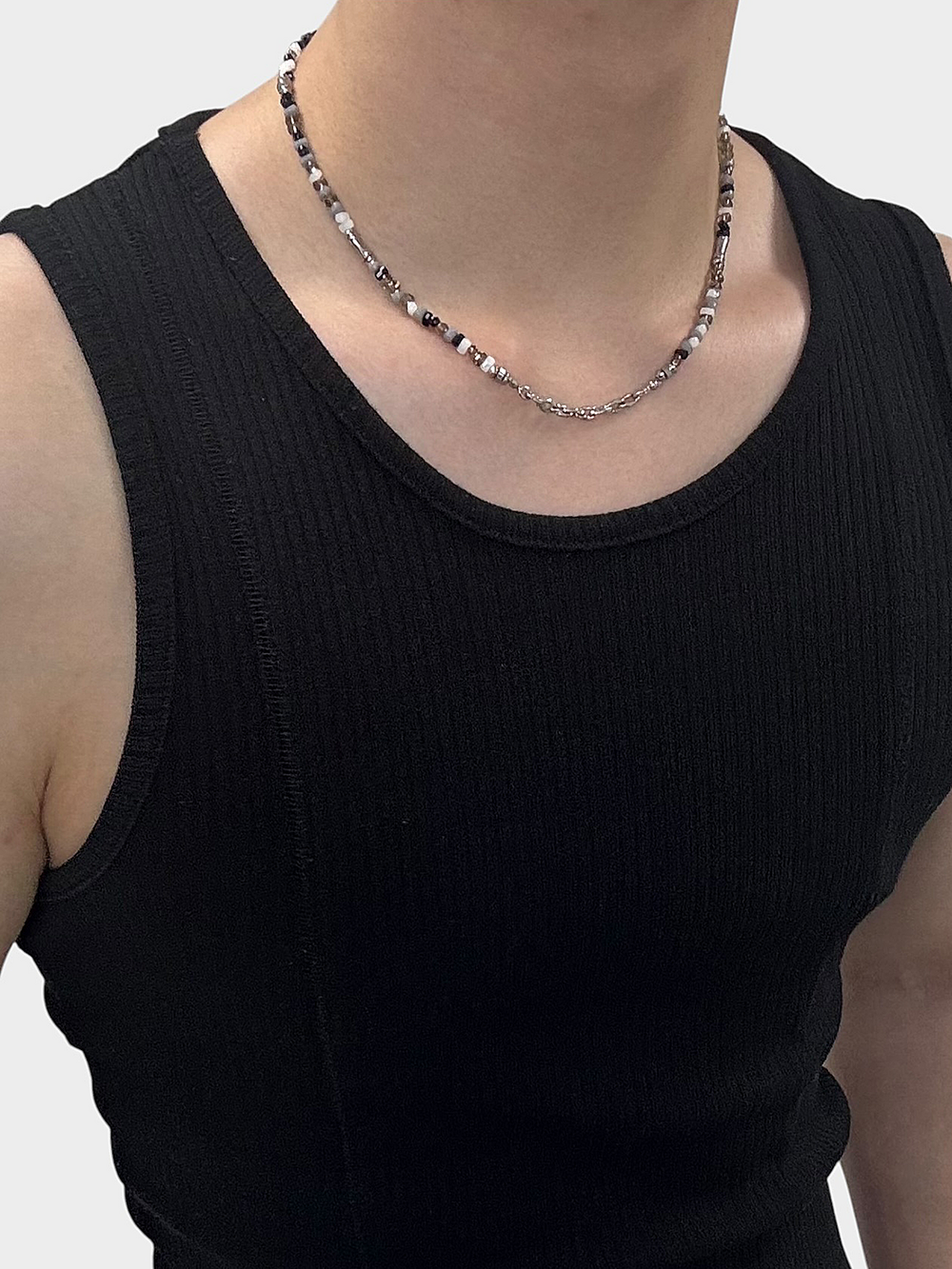넥라인에서 체인이 중심을 잡아줍니다.
