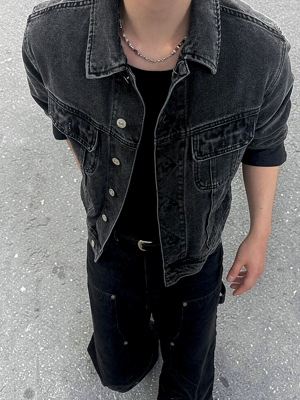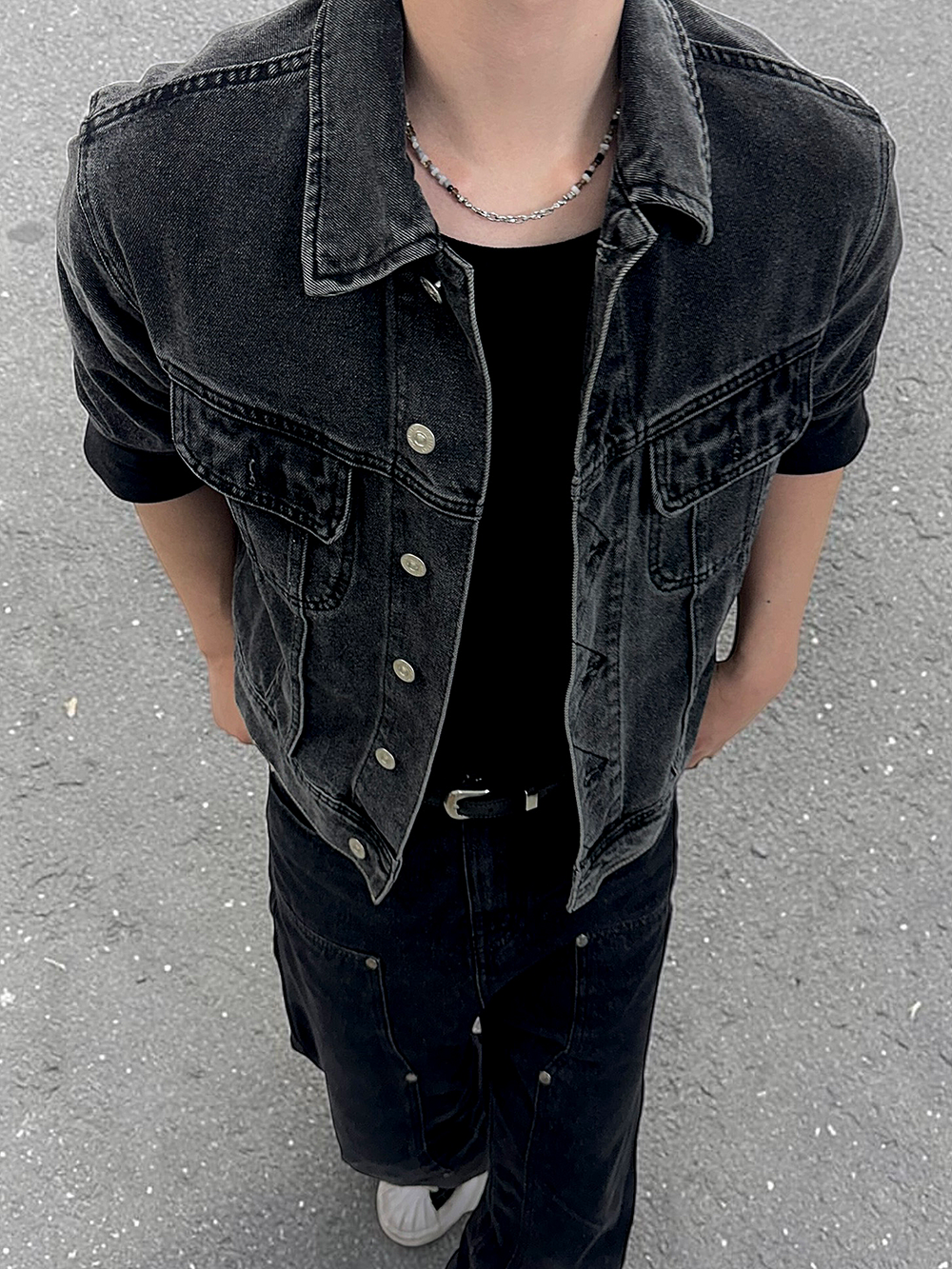 무채색의 코디에 어울리는 모노톤의 색감이 포인트가 되어줍니다.