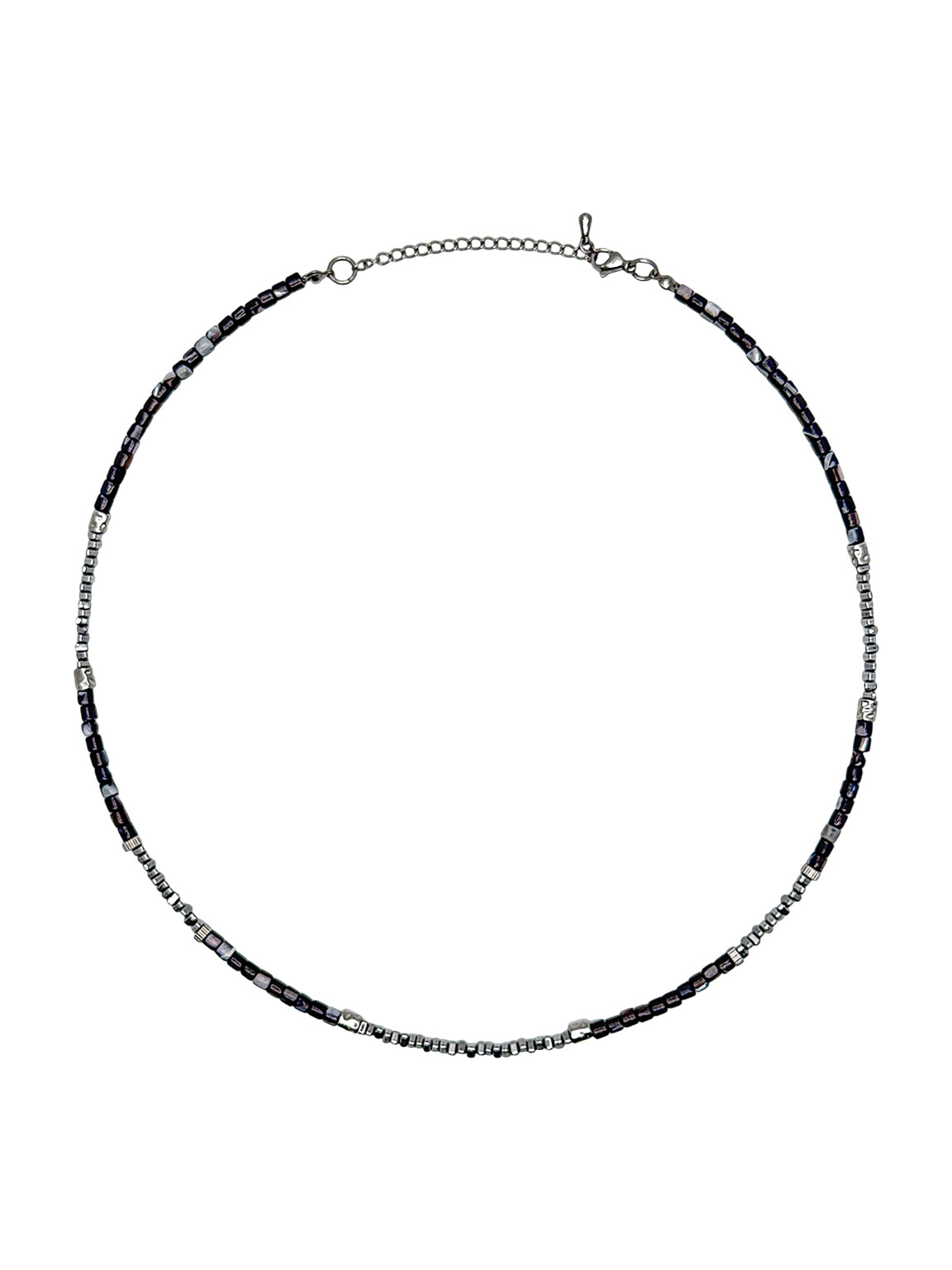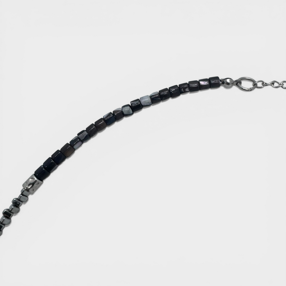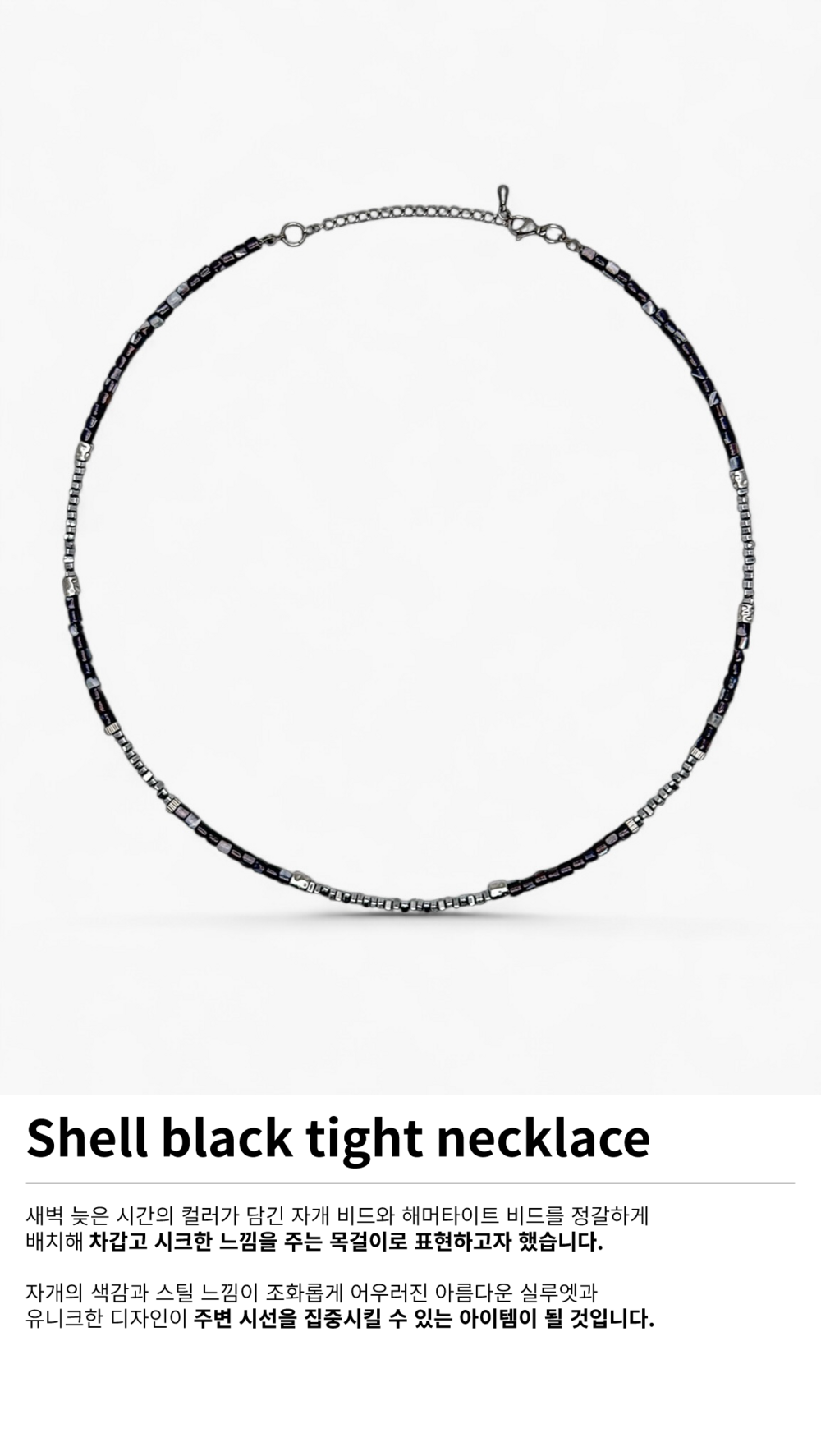 블랙과 네이비 컬러의 오묘한 색감의 자개 비드로 제작됩니다.
