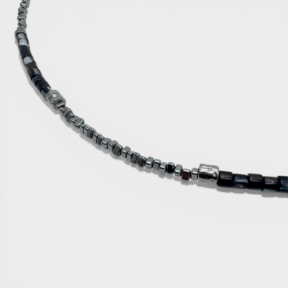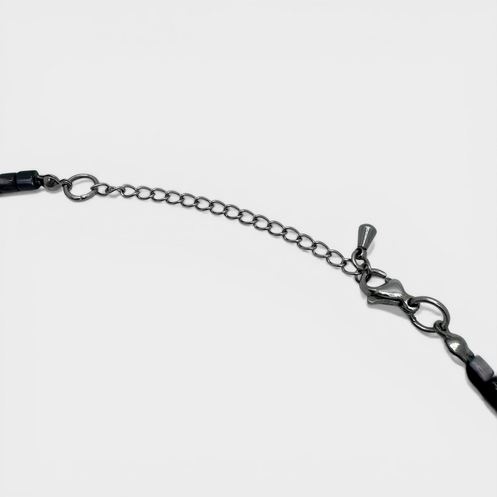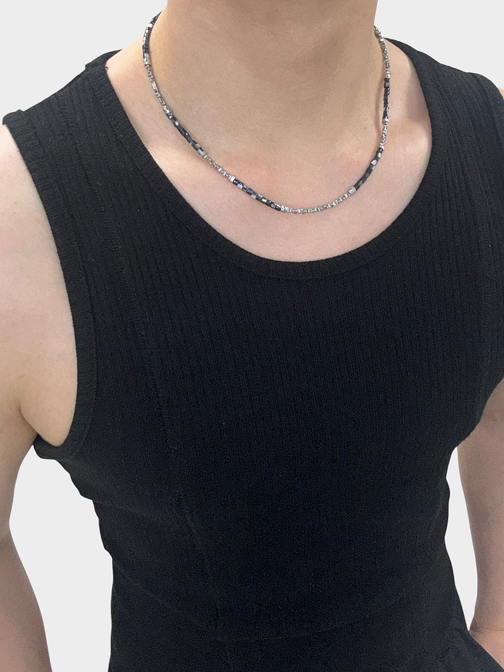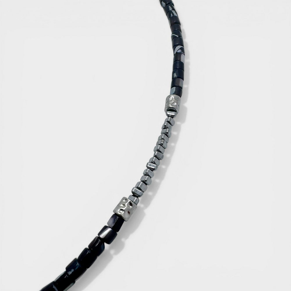 블랙과 네이비 컬러의 오묘한 색감의 자개 비드로 제작됩니다.