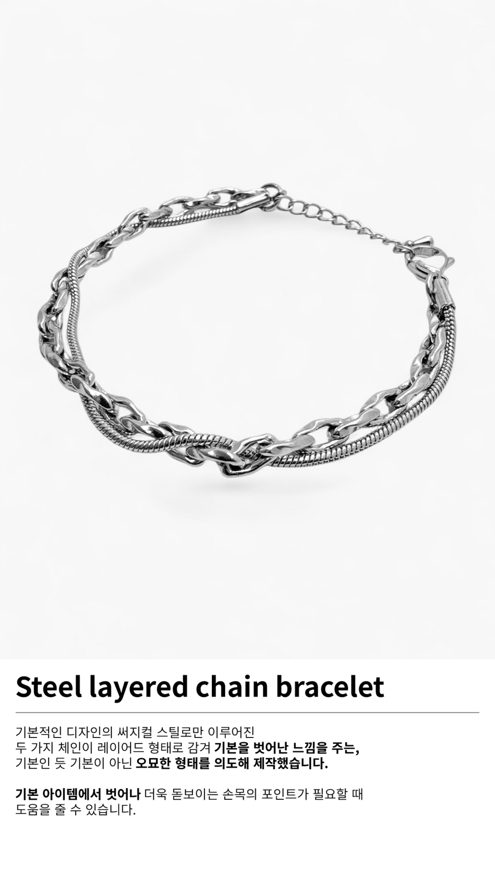 Steel layered chain bracelet