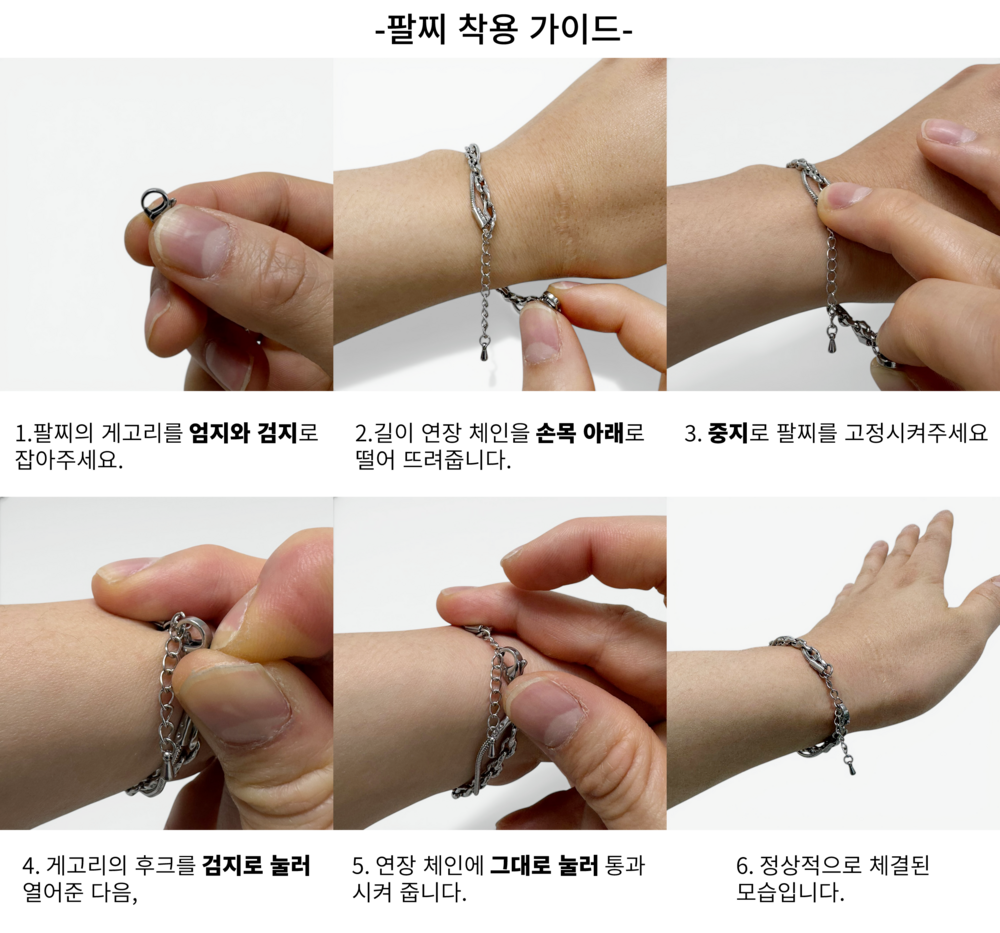 길이 조절 연장 체인으로 3cm까지 조정 하여 착용이 가능합니다.
