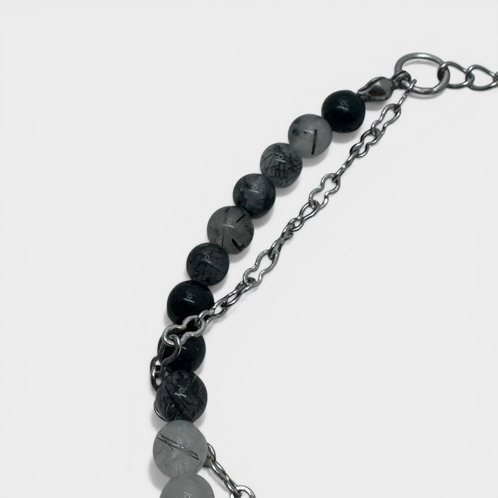 레이어드 체인으로 원석만이 내는 무드를 보완 해주는 포인트가 됩니다.