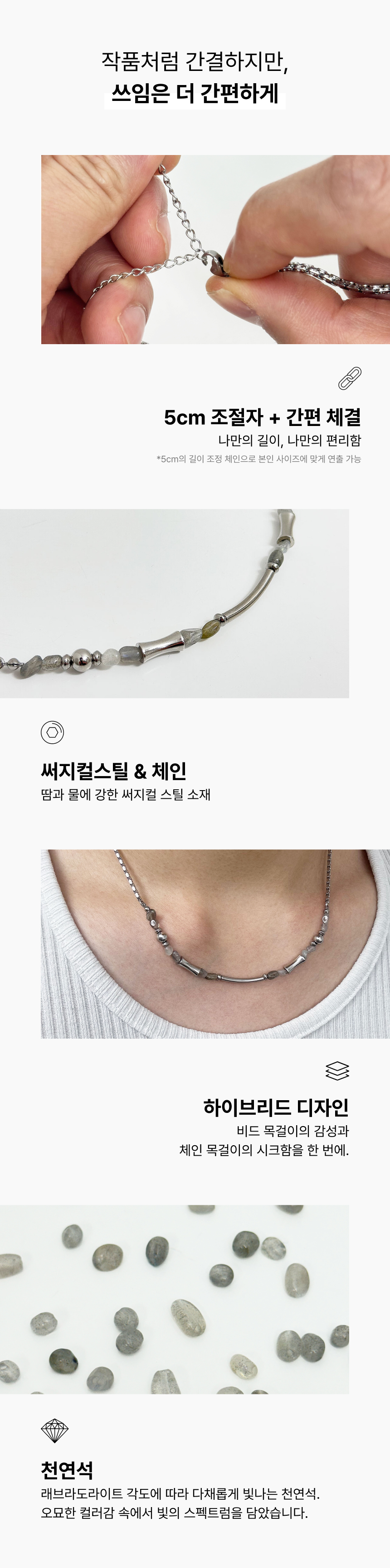 체인 제품은 구조상 꺾이거나 끊어질 수 있으니, 착용 시 부드럽게 다뤄주시길 바랍니다.